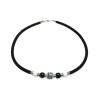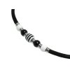 Zaujímavý náhrdelník dámsky vyrobený z textilnej šnúry. Fashion šperk náhrdelník je vhodný pre každú dámu a ku všetkým outfitom, pretože s nesmrteľnou kombináciou dvoch farieb - čierna a biela, nikdy nič nepokazíte! Hrubá textilná šnúra je čiernej farby a ozdobená korálkami v bielej a čiernej farbe, ktoré sú od seba oddelené oceľovými krúžkami. Z kvalitnej chirurgickej ocele je vyrobené aj zapínanie šperku na klasickú karabínku. Výhodou zapínania je to, že disponuje predlžovacou retiazkou až 6 cm, vďaka ktorej si viete pohodlne nastaviť dĺžku náhrdelníka.