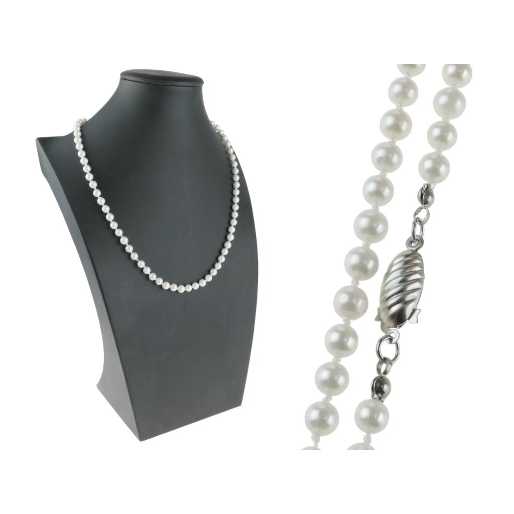 Jemný a elegantný perlový náhrdelník značky Alexis Marten ® z perál bielej farby. Klasický perlový náhrdelník vyrobený so shell perál a je navlečení na niti zo 100 % prírodného hodvábu metódou uzlíkovania. Táto metóda zabraňuje, aby sa jednotlivé perly o seba šúchali a tým znehodnocovali a pri náhodnom pretrhnutí sa perly nerozkotúľajú. Náhrdelník má ozdobné bezpečnostné zapínanie z chirurgickej ocele. Tento krásny náhrdelník sa svojou dĺžkou hodí ku všetkým typom výstrihov a je určený pre všetky vekové skupiny.