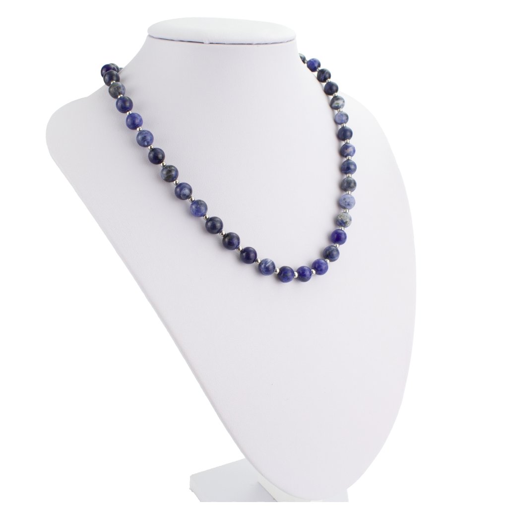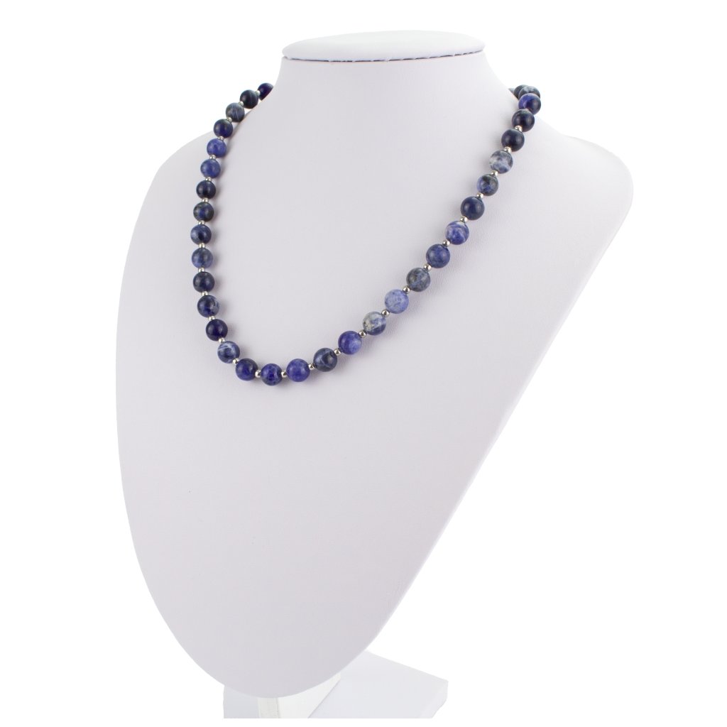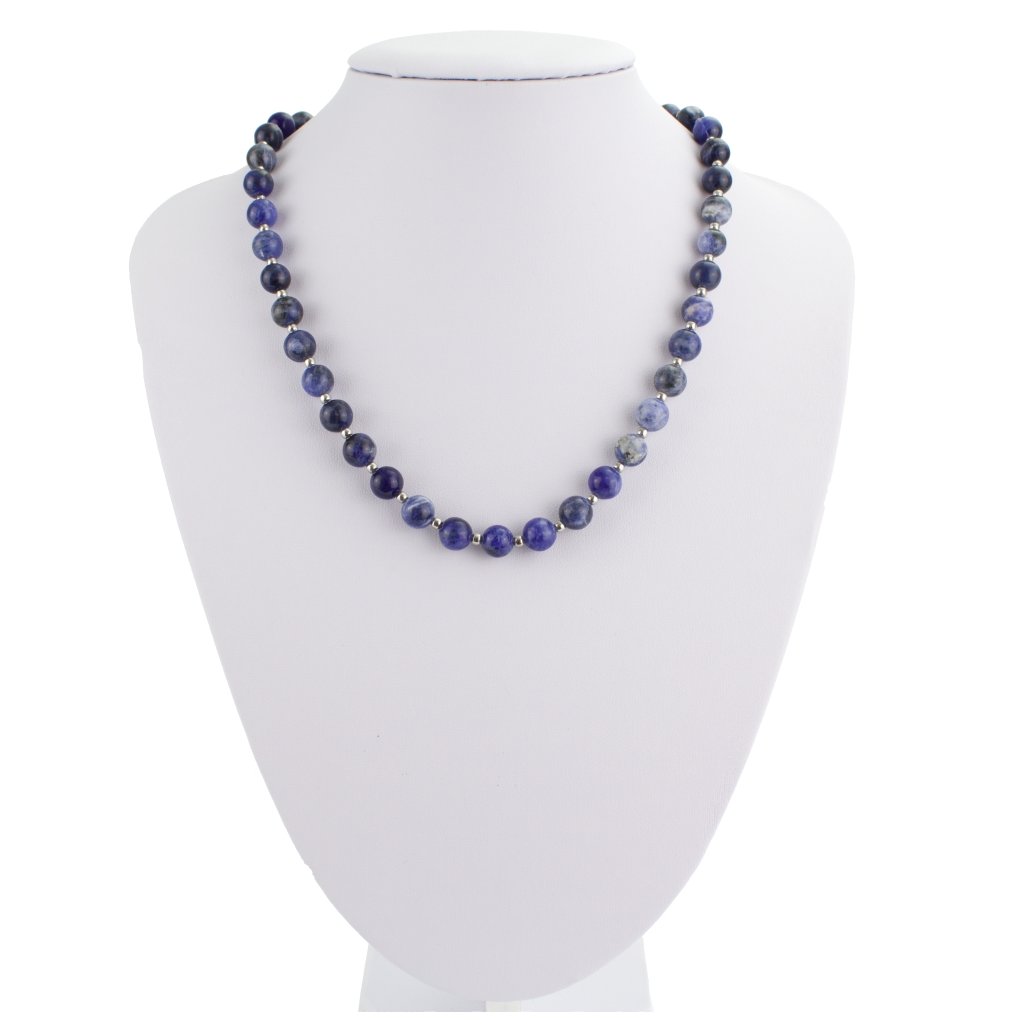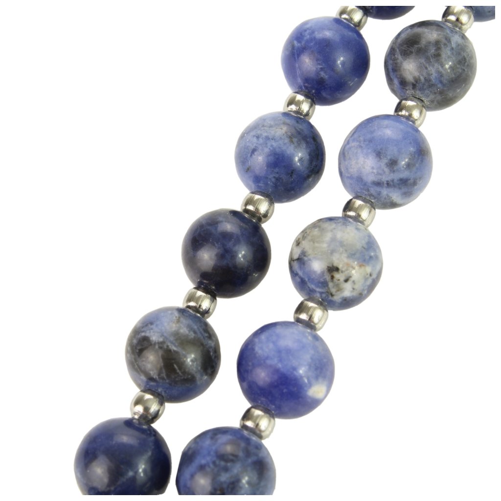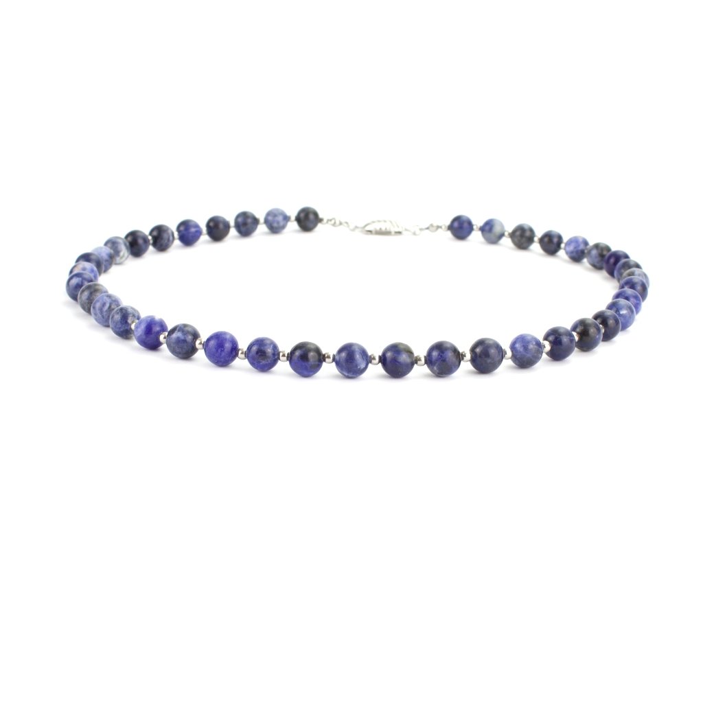 Výborný náhrdelník z polodrahokamu sodalit značky ALEXIS MARTEN nielen pre študentov, ale pre všetkých, ktorí sa potrebujú stále učiť nové veci. Sodalit napomáha logickému mysleniu a podporuje vnímavosť. Náhrdelník z prírodného sodalitu, vhodný aj na meditatívne účely. Korálky sodalitu sú kombinované s korálkami z chirurgickej ocele. Náhrdelník vo všetkých farbách džínsovej modrej sa mimoriadne hodí k džínsovej študentskej móde, ale bude pôsobiť dôstojne aj rámci klasického outfitu. Bezpečnostné zapínanie z chirurgickej ocele chráni náhrdelník pred stratou. Návlek na špeciálnej niti zo 100% prírodného hodvábu, odolnej voči pretrhnutiu.
