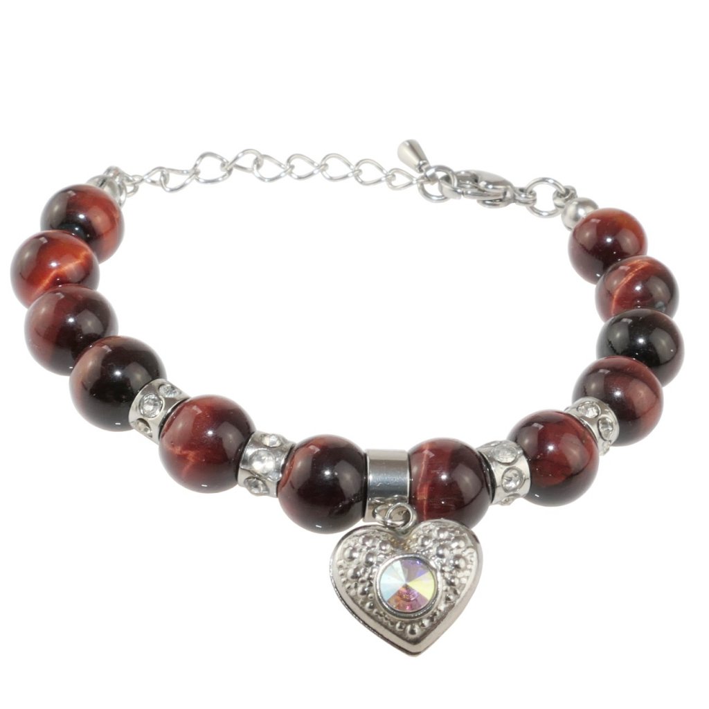 Dámsky náramok z polodrahokamu Tigrie oko hnedé so srdiečkom