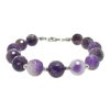 Elegantný dámsky náramok vyrobený z polodrahokamu Ametyst v kombinácií s chirurgickou oceľou. Ametyst patrí medzi obľúbené polodrahokamy, hlava vďaka svoje krásnej fialovej farbe. Každá gulička vyrobená z Ametystu má svoje vlastné sfarbenie a tieňovanie. Veľkosť guličiek je 10 mm a majú brúsený vzor. Tento vzor spolu so zaujímavým zafarbením guličiek tak vytvára unikátny šperk vhodný pre každú dámu! Zapínanie náramku je na klasickú karabínku, ktorá je vyrobená z kvalitnej chirurgickej ocele, rovnako ako malé guličky. Oceľ nekoroduje, nečerná a má dlhú živostnosť.