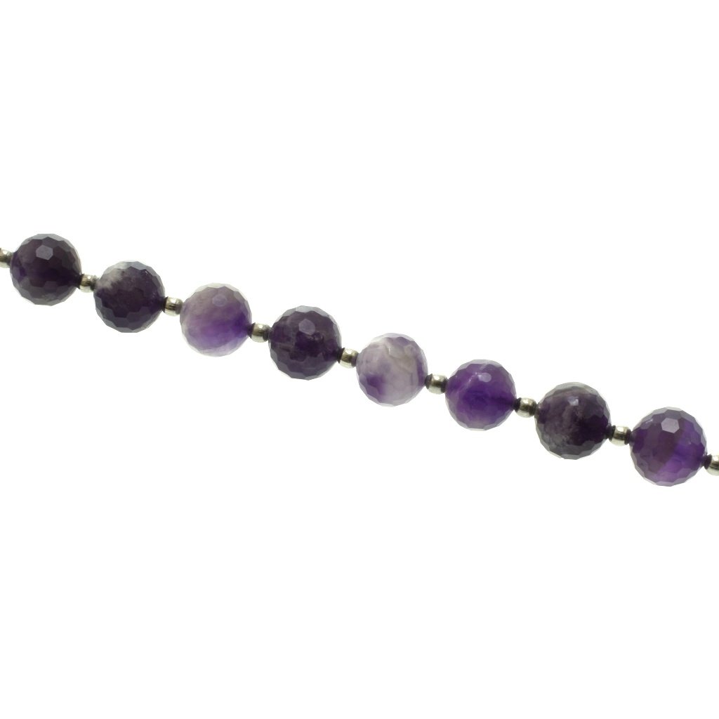 Elegantný dámsky náramok vyrobený z polodrahokamu Ametyst v kombinácií s chirurgickou oceľou. Ametyst patrí medzi obľúbené polodrahokamy, hlava vďaka svoje krásnej fialovej farbe. Každá gulička vyrobená z Ametystu má svoje vlastné sfarbenie a tieňovanie. Veľkosť guličiek je 10 mm a majú brúsený vzor. Tento vzor spolu so zaujímavým zafarbením guličiek tak vytvára unikátny šperk vhodný pre každú dámu! Zapínanie náramku je na klasickú karabínku, ktorá je vyrobená z kvalitnej chirurgickej ocele, rovnako ako malé guličky. Oceľ nekoroduje, nečerná a má dlhú živostnosť.