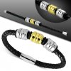 Pánsky náramok z čiernej eko kože v kombinácii koráliek z chirurgickej ocele v striebornej a zlatej farby