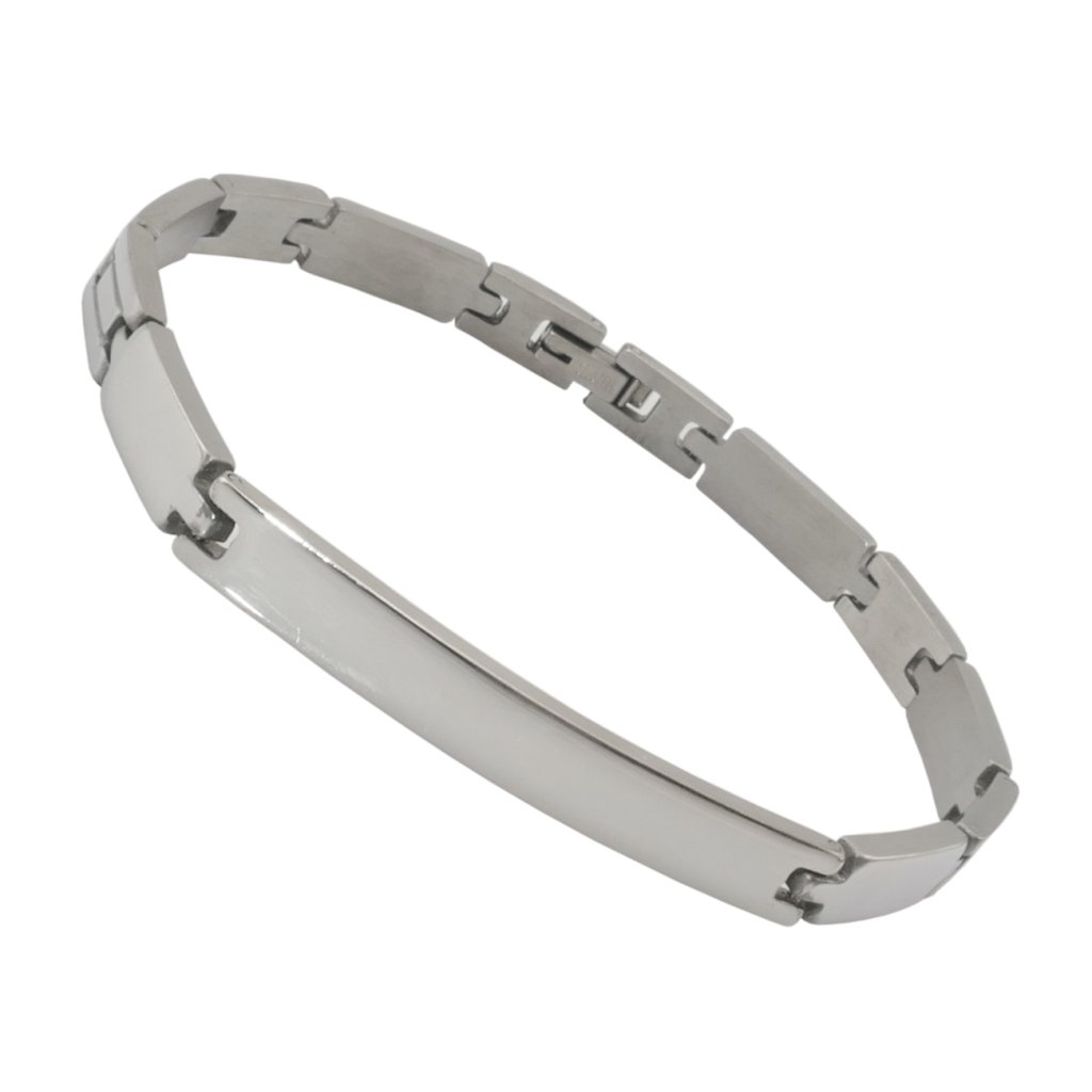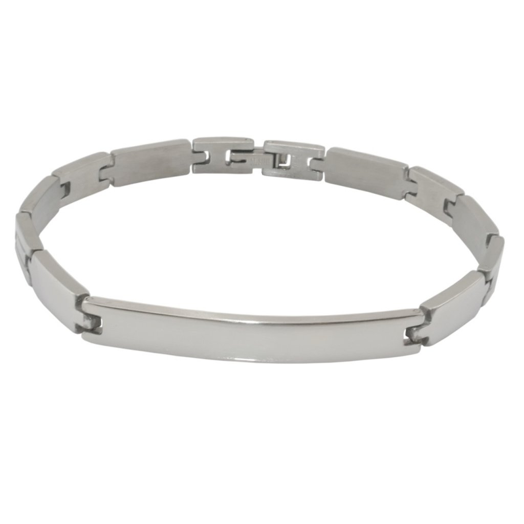 Krásny plochý pánsky náramok v striebornom prevedení s platničkou. Náramok je pospájaný z s menších článkov a z jednej väčšej platničky. Celý šperk je vyrobený z kvalitnej chirurgickej ocele. Náramok je vhodný na bežné každodenné nosenie. Chirurgická oceľ je materiál ktorý je hyalergénny a nečerná. Chirurgická oceľ si nevyžaduje žiadnu špeciálnu staroslivosť.