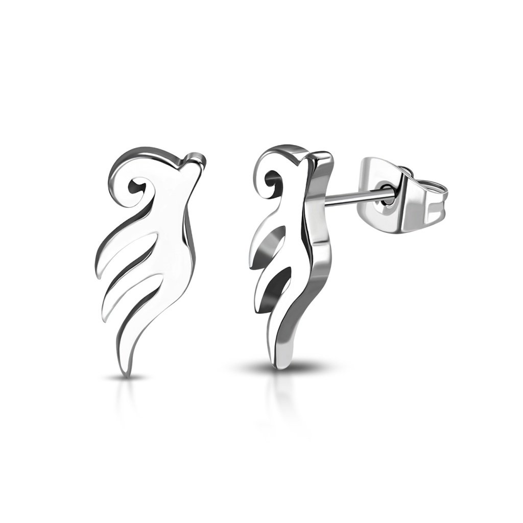 Dámske náušnice z chirurgickej ocele v striebornej farbe. Náušnice majú tvar krásneho anjelského krídla. Sú vhodné pre dámy bez rozdielu veku. Pôsobia jemne a decentne a ľahko ich skombinujete s náramkom, alebo príveskom. Náušnice sú vyrobené z kvalitnej chirurgickej ocele, ktorá im zaručí dlhú životnosť a nepotrebuje žiadnu špeciálnu starostlivosť. Chirurgická oceľ nekoroduje, nečerná a je to odolný materiál, ktorý je vhodný na bežné každodenné nosenie. Udržiava si svoj lesk. Náušnice majú zapínanie puzetového typu.