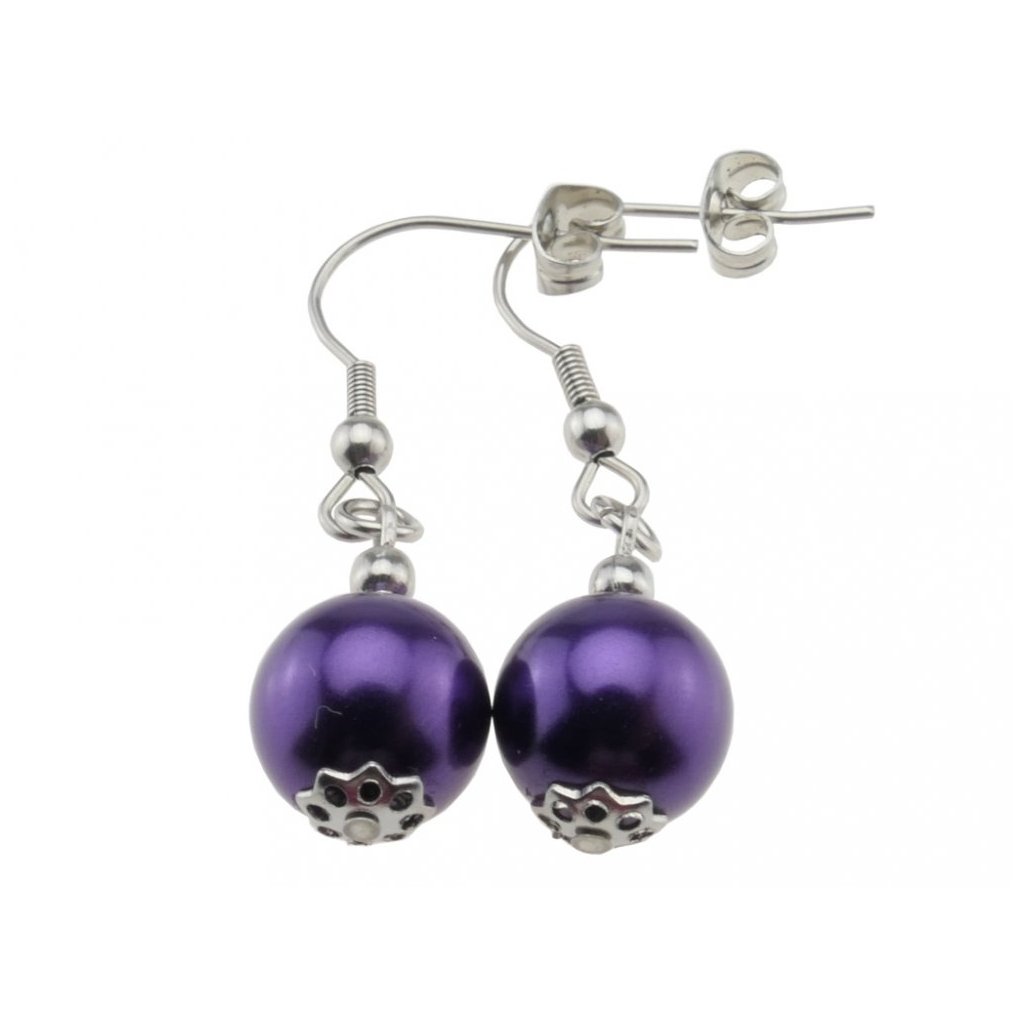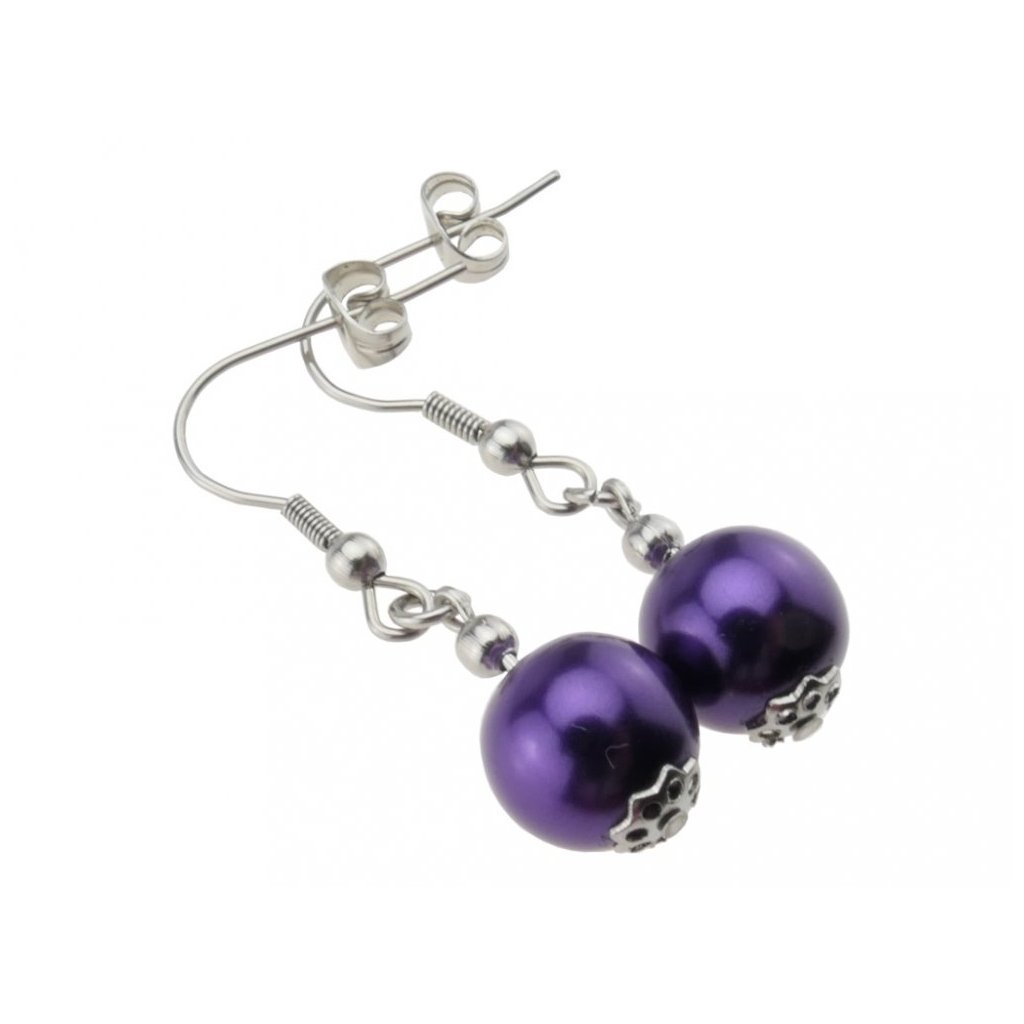 Dámske náušnice visiace z ocele s korálkou - fialové + darčeková krabička zadarmo