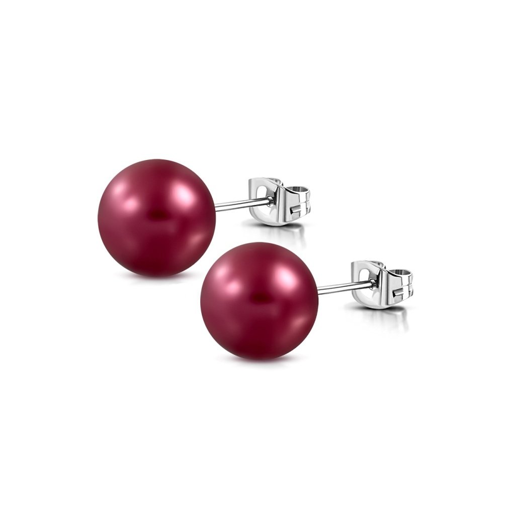 Dámske oceľové náušnice guličky bordové - 6 mm + darčeková krabička zadarmo
