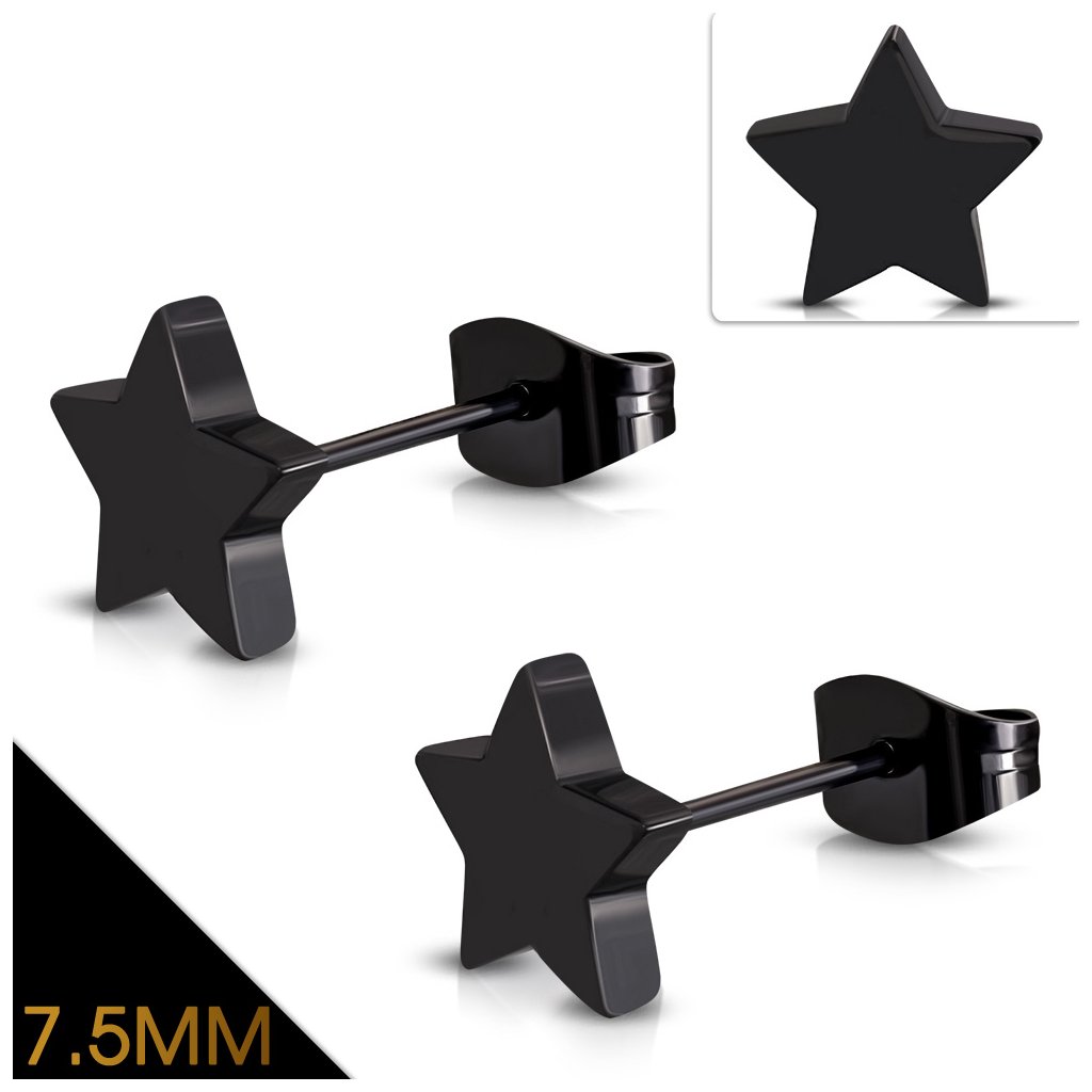 Náušnice čierne z chirurgickej ocele hviezdičky