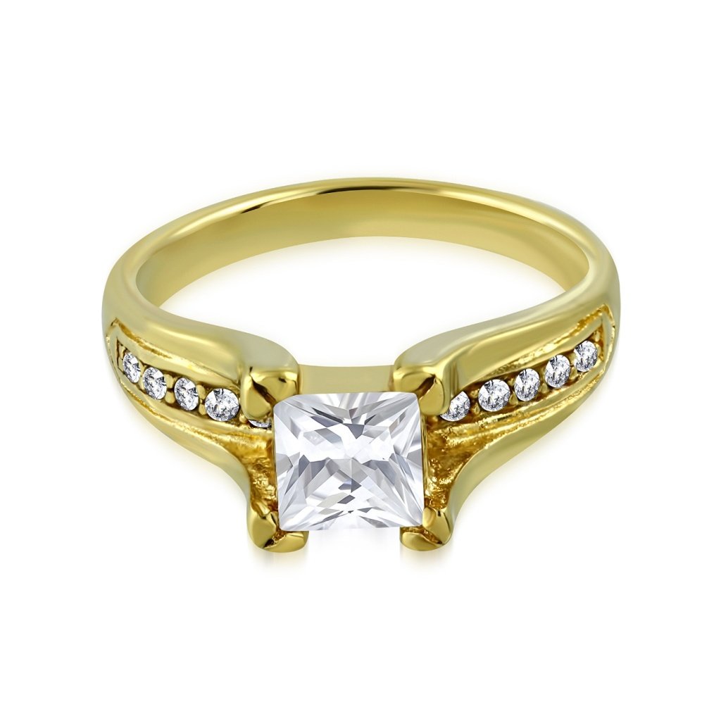Dámsky prsteň z ocele v zlatom prevedení so štvorcovým očkom + darčeková krabička zadarmo