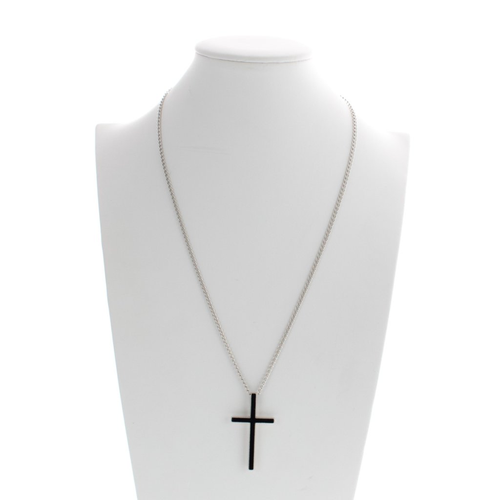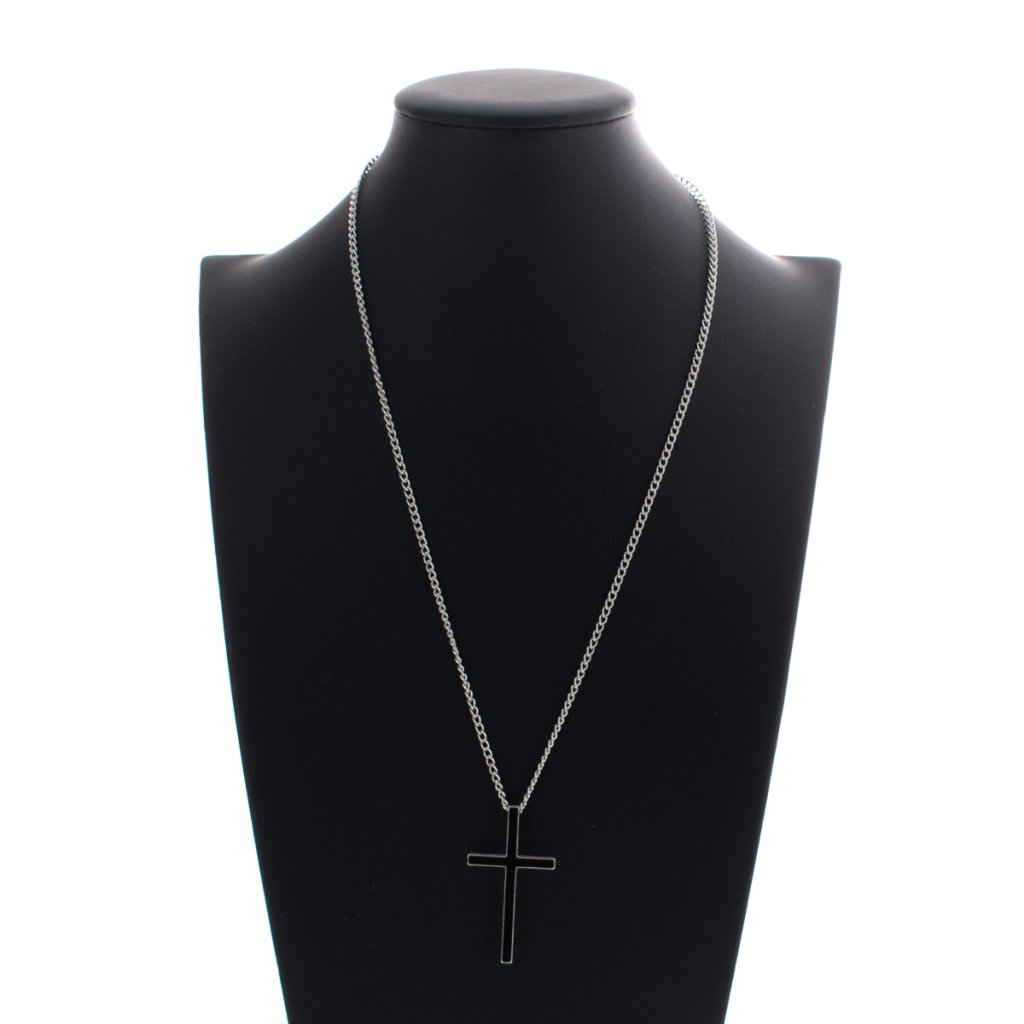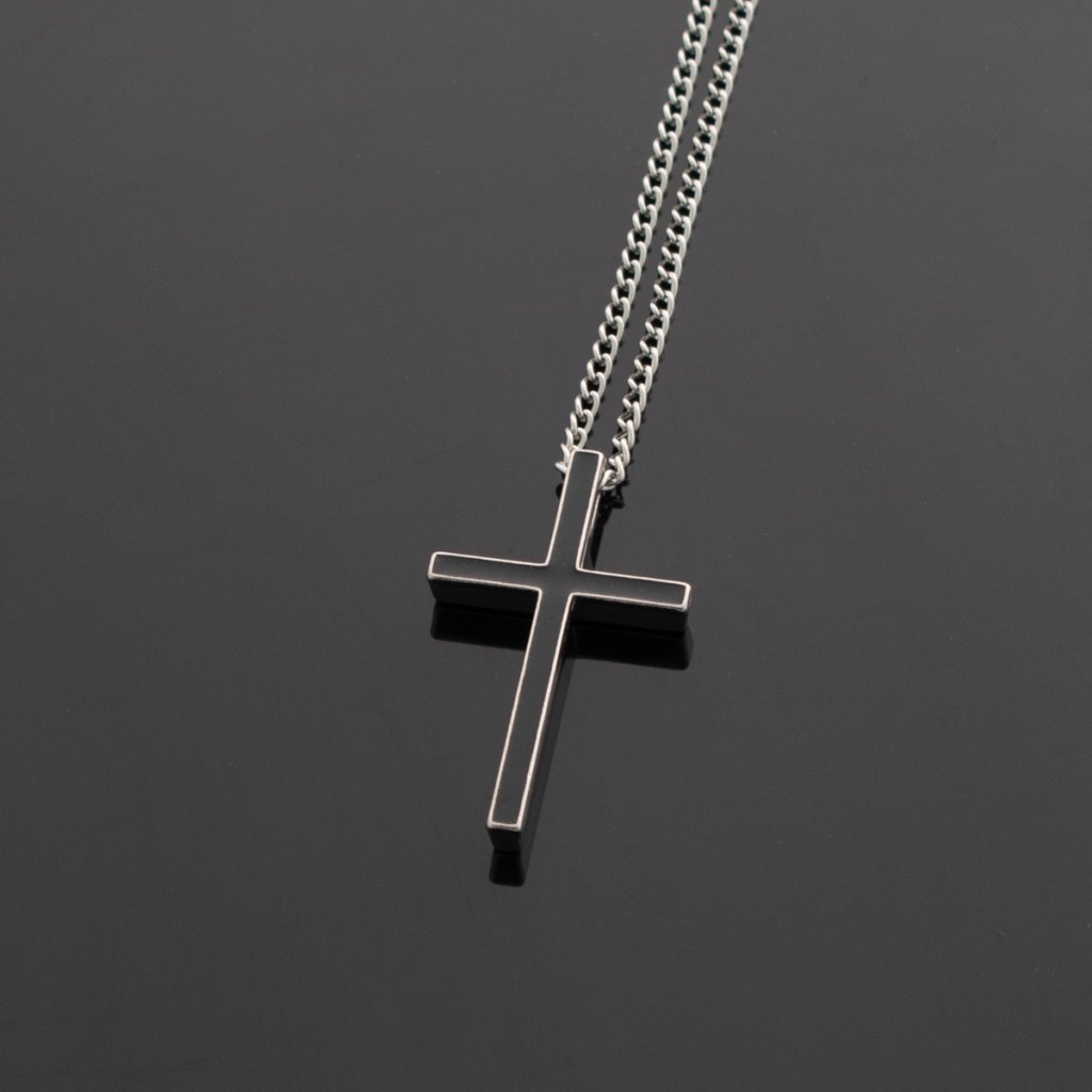Čierny krížik so strieborným lemovaním a retiazkou + darčeková krabička zadarmo