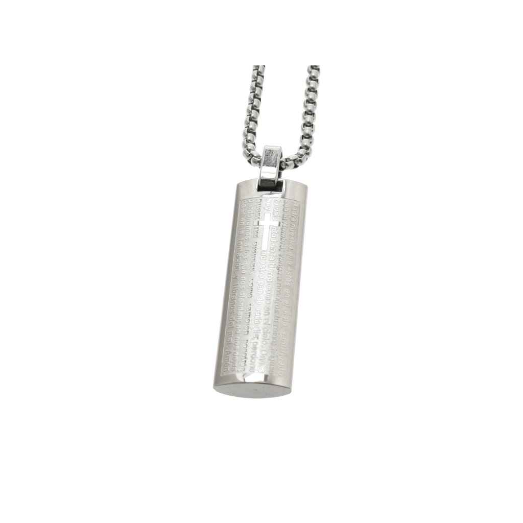 Pánska retiazka s príveskom v tvare kapsuly v striebornom prevedení. Prívesok má nezvyčajný tvar kapsuly, na ktorej je malý kríž a modlitba. Retiazka má obľúbený vzor Box v 3 mm hrúbke. Spolu vytvárajú krásny šperk, ktorý sa hodí ku každému outfitu a každej vekovej kategórie. Vyrobený je z kvalitnej chirurgickej ocele, ktorá je odolná, nehrdzavie a nečerná. Výhodou ocele je jej hypoalergénnosť vďaka čomu je vhodná aj každodenne nosenie.
