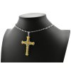 Zaujímavý prívesok s retiazkou vyrobený z chirurgickej ocele. Prívesok kríž sa skladá z dvoch krížov - jeden strieborný, na ktorom je zlatý kríž. Ten je zdobený malými čírymi očkami. Šperk je doplnený o retiazku v military štýle. Spojenie prívesku kríž a military retiazky pôsobí štýlovo a moderne. Retiazka s príveskom je vhodná pre pánov, ktorí určite ocenia aj jej výhody ocele. Šperky z chirurgickej ocele neoxidujú, nehrdzavejú a sú pevné a odolné. Oceľové šperky si nevyžadujú žiadnu špeciálnu starostlivosť.