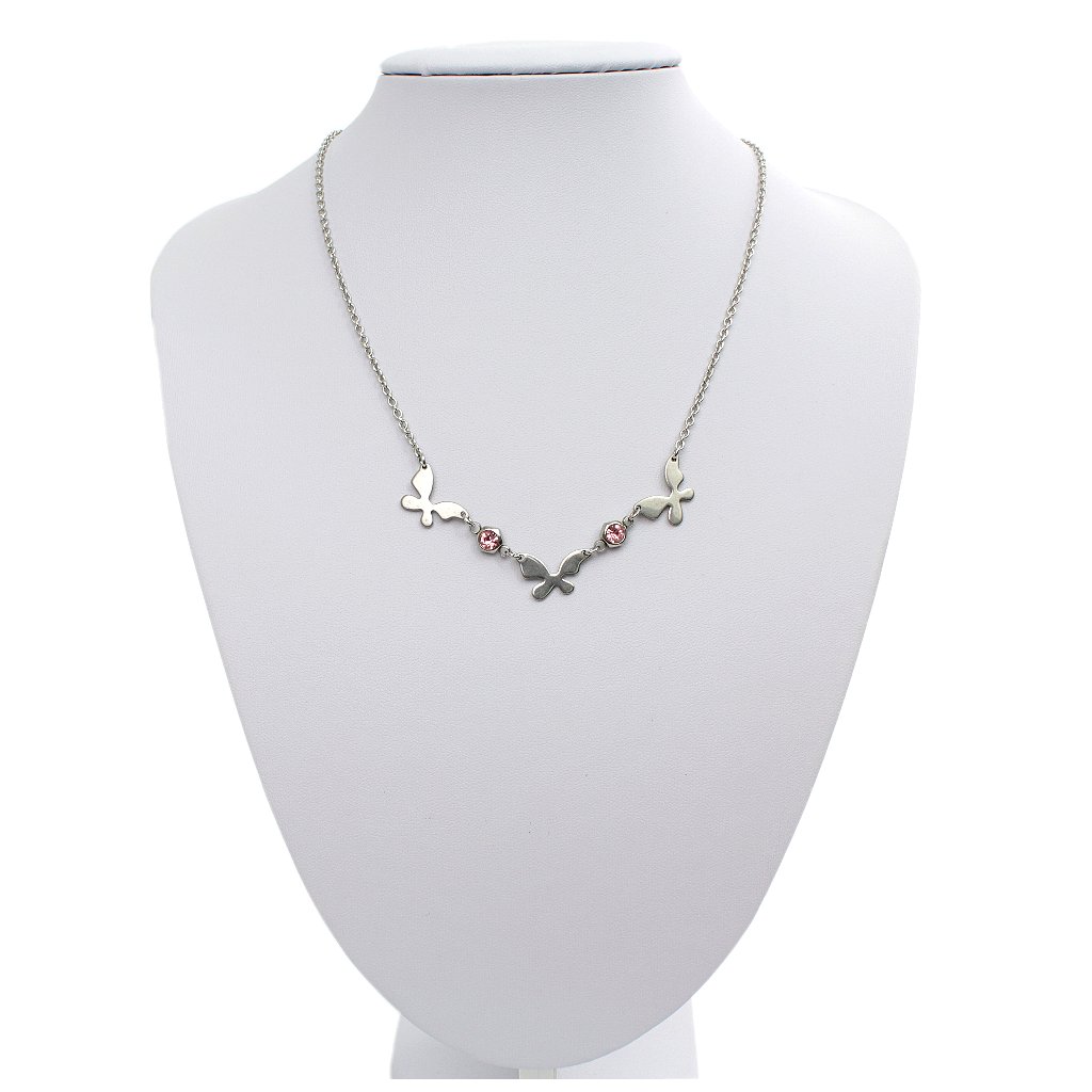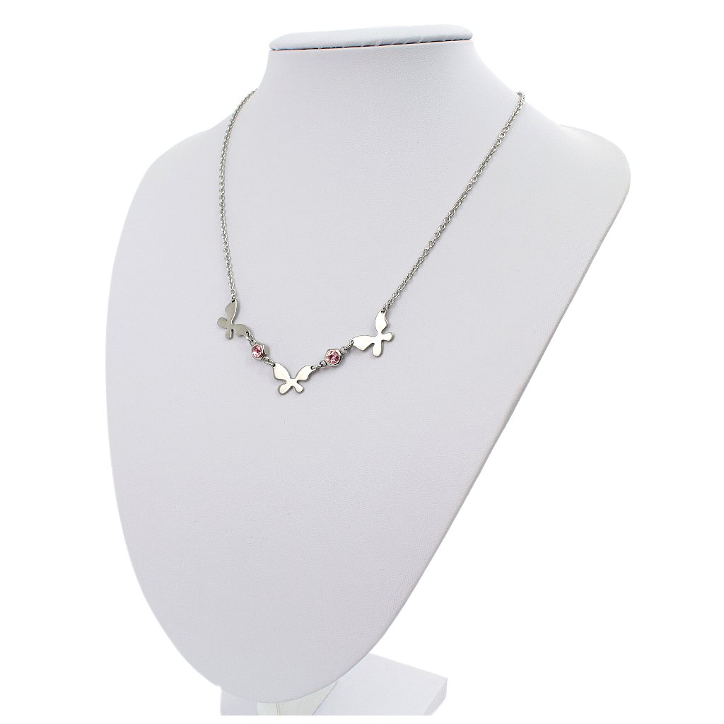 Retiazka motýle v striebornej farbe z chirurgickej ocele s ružovými očkami