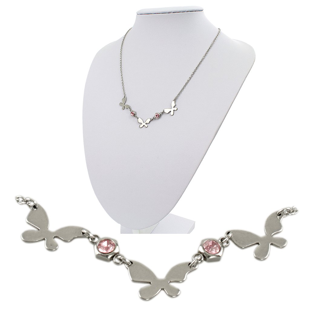 Vlastnosti a opis retiazky z chirurgickej ocele - motýle s ružovými očkami