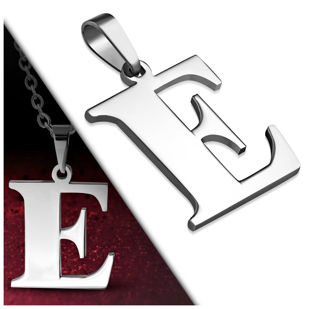 Retiazka z chirurgickej ocele s príveskom v tvare písmena " E " 2,2 cm x 1,9 cm