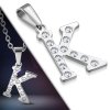 Retiazka s príveskom z chirurgickej ocele v tvare písmena " K " strieborné s očkami - veľkosť 2 cm