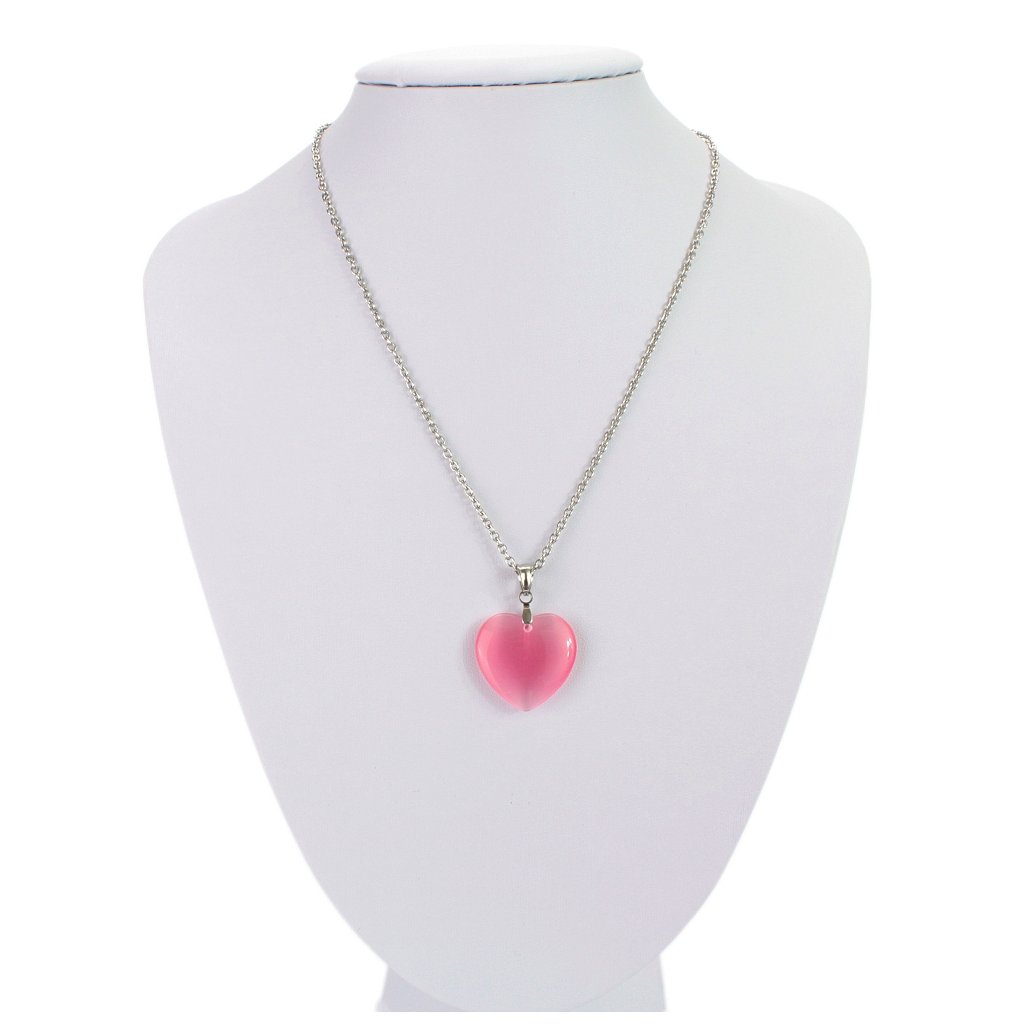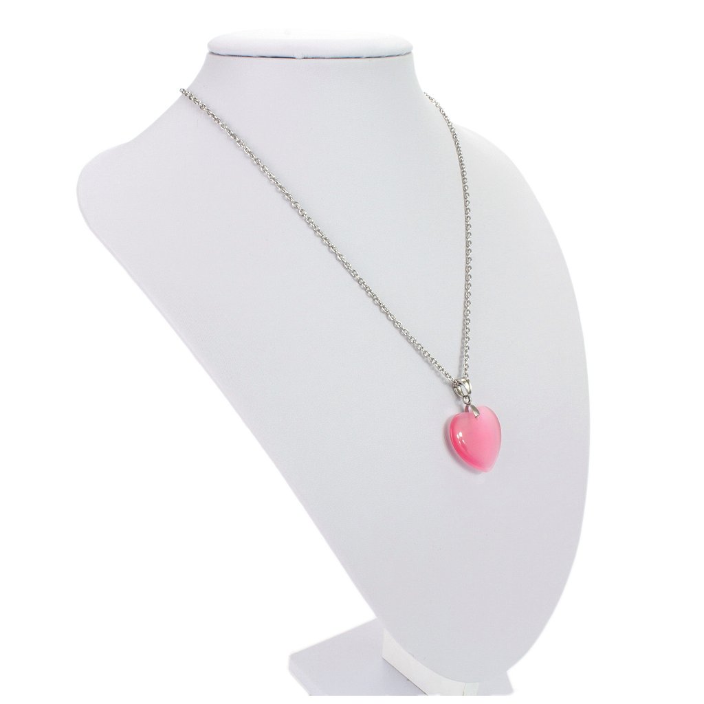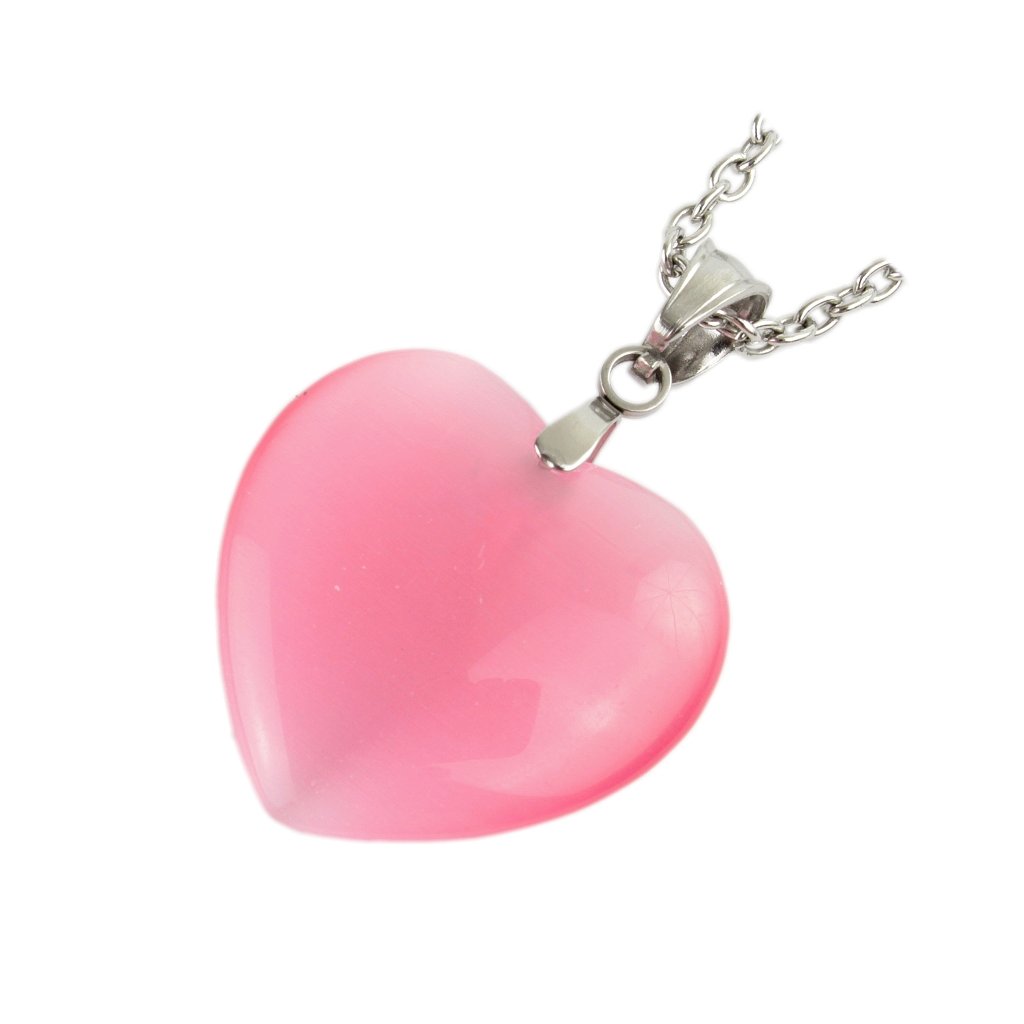 Retiazka z chirurgickej ocele s príveskom srdce z polodrahokamu Mačacie oko - Ružové