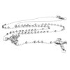 Veľmi jemná retiazka ruženec z chirurgickej ocele v striebornej farbe. Guličky na retiazke sú veľké 3 mm a zbrúsené do hranatého tvaru. V strede ruženca je Panna Mária a kríž s ukrižovaným Ježišom Kristom. Ruženec je veľmi obľúbenou kresťanskou retiazkou, ktorá je vhodná aj ako darček, napríklad k birmovke. Materiál ruženca je kvalitná chirurgická oceľ, ktorá je pevná a odolná. Nekoroduje ani nečerná, preto je vhodná na bežné každodenné nosenie. Výhodou chirurgickej ocele je to, že je antialergická, čo je často krát veľmi dôležitý faktor pri výbere šperkov. Zapínanie je na klasickú karabínku.