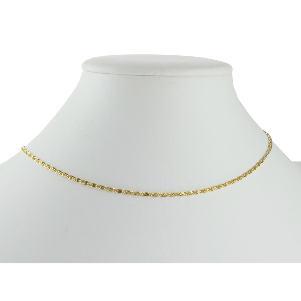 Veľmi krásna a jemná dámska retiazka v zlatom prevedení vhodná na bežne nosenie. Nie je moc vhodná k prívesku nakoľko je vzorovaná a plochá ale veľmi vynikne samostatne ako jemný ženský doplnok. Materiál retiazky a prívesku je kvalitná chirurgická oceľ, ktorá je odolná a nestráca svoj lesk. Nepotrebuje žiadnu špeciálnu starostlivosť, je antialergická a vhodná na bežné každodenné nosenie.