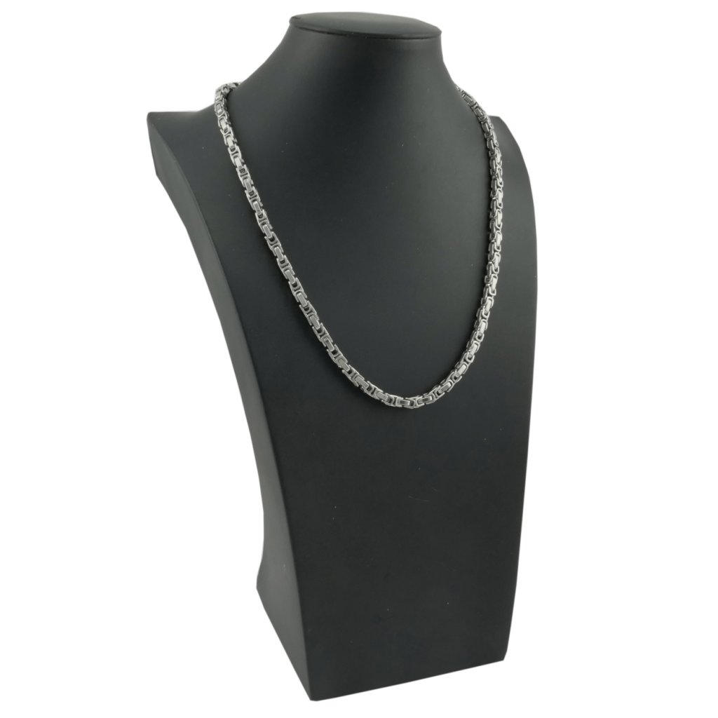 Strieborná pánska retiazka kráľovský vzor z chirurgickej ocele v striebornom prevedení. Moderný šperk pre muža ktorý ma rád nielen klasické obyčajné retiazky. Retiazka je vhodná na bežné každodenné nosenie a pre všetky vekové kategórie. Nakoľko je celá retiazka z kvalitnej chirurgickej ocele tak Vám vydrží veľmi dlho ako nová. Chirurgická oceľ nečerná a nekoroduje ako to poznáme z iných materiálov ako napríklad striebro či byžuteria.