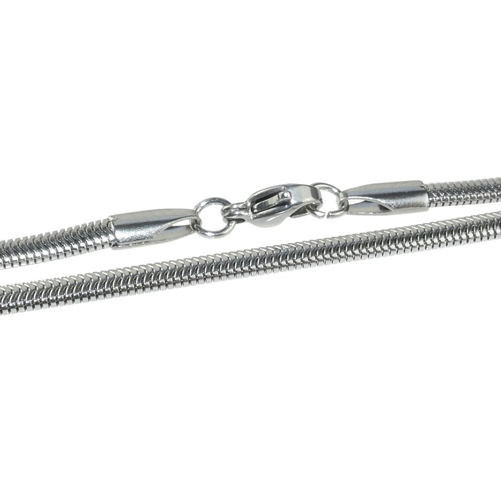 Krásna retiazka s hadím vzorom z chirurgickej ocele. Hadí vzor je veľmi obľúbený a môžete si vybrať z jeho rôznych hrúbok, konkrétne táto je 3 mm hrubá, preto je vhodnejšia skôr pre dámy, ktoré preferujú jemnejší štýl. Výborne sa dá zladiť s náramkom, či s náušnicami. Materiál retiazky je kvalitná chirurgická oceľ, ktorá je antialergická a vhodná na bežné každodenné nosenie. Je pevná, odolná, nekoroduje ani nečerná, taktiež si nevyžaduje žiadnu špeciálnu starostlivosť.